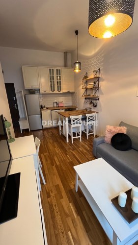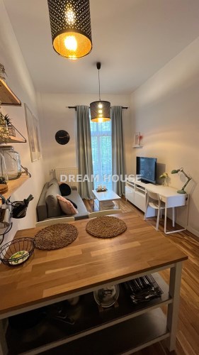 Oferujemy na wynajem wyjątkowe, dwupokojowe mieszkanie z balkonem, położone na pierwszym piętrze stylowej kamienicy w samym sercu prestiżowej Dzielnicy Muzycznej.