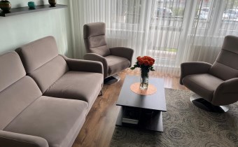 - Duży, słoneczny salon z wyjściem na loggię – idealny na poranną kawę