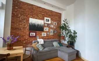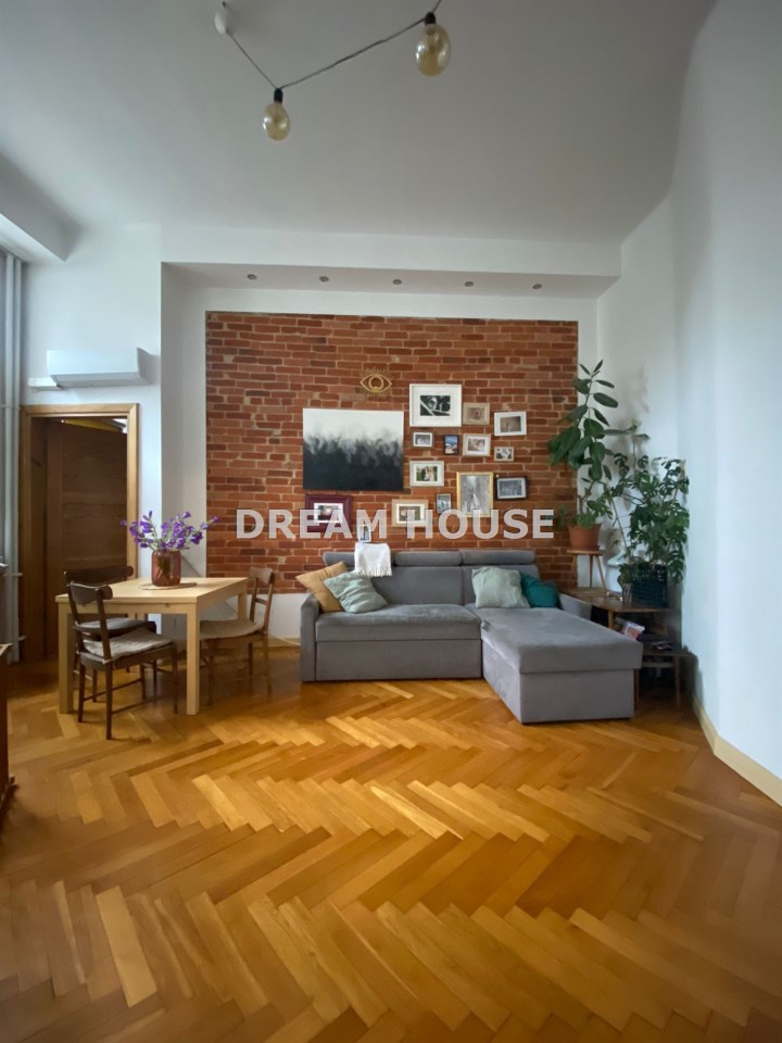 Na podłogach dębowy parkiet. W salonie na ścianie oryginalna cegła. W mieszkaniu jest klimatyzacja.